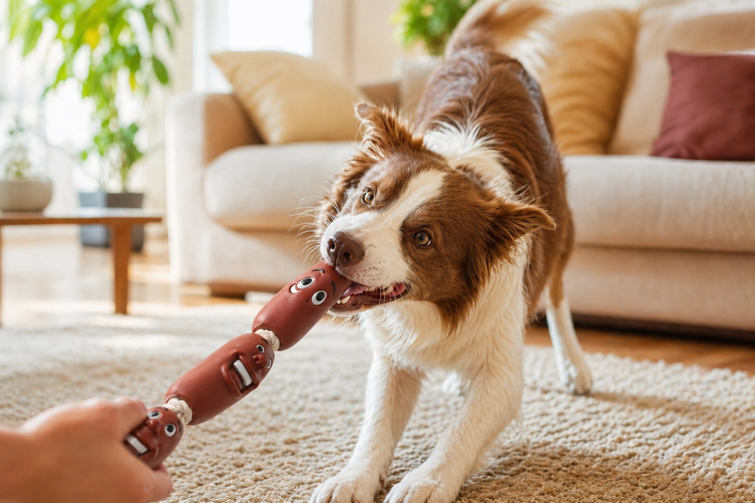 Ce jouet original combine une corde robuste et des éléments en forme de saucisses amusantes, parfaits pour attirer l’attention de votre chien et encourager le jeu actif. Idéal pour les jeux de traction, de lancer ou simplement pour mâcher, il contribue également à l’hygiène dentaire en aidant à réduire le tartre.