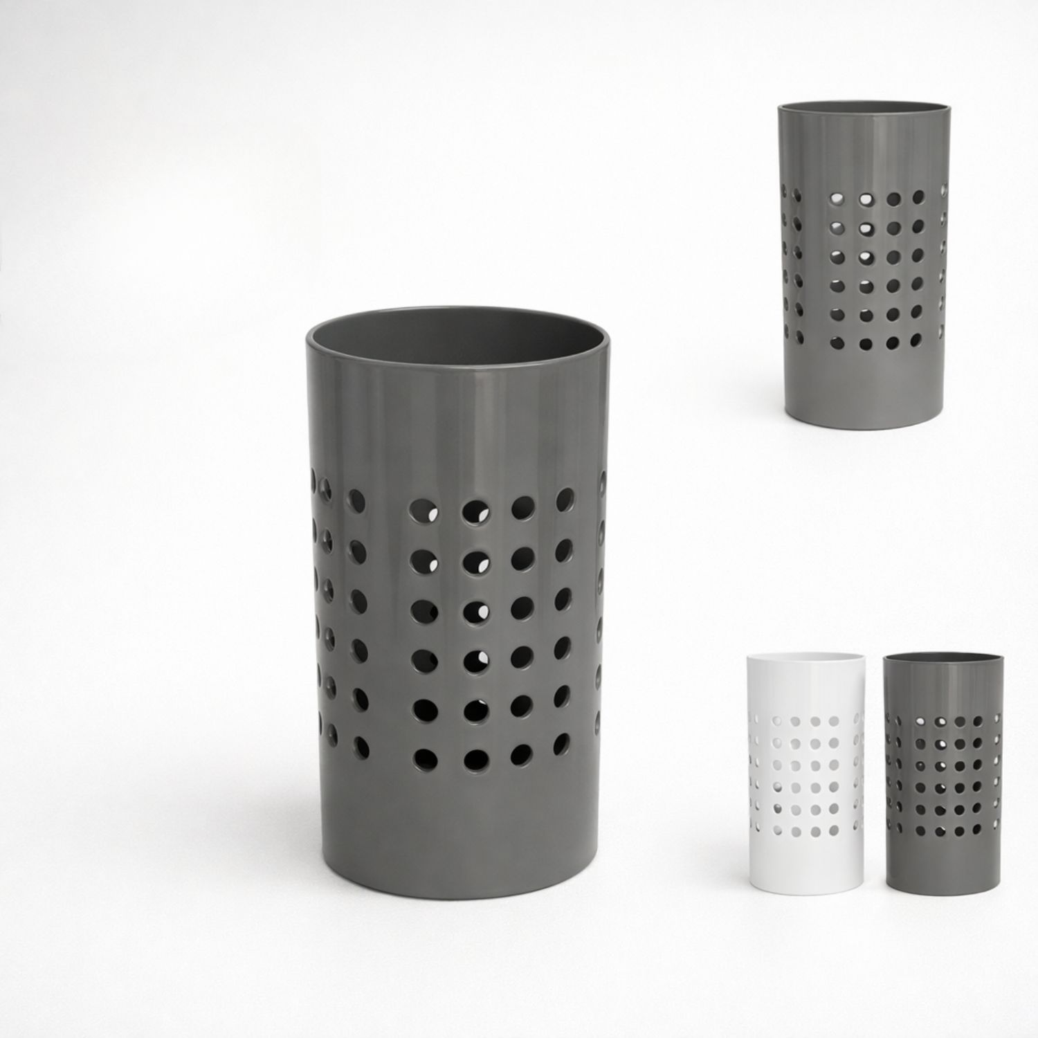 Avec ses dimensions de 10,5 × 10,5 × 19 cm, il offre une capacité idéale pour ranger spatules, cuillères, fouets ou autres ustensiles du quotidien. Sa structure perforée permet une bonne circulation de l’air et contribue à garder les ustensiles propres et secs.